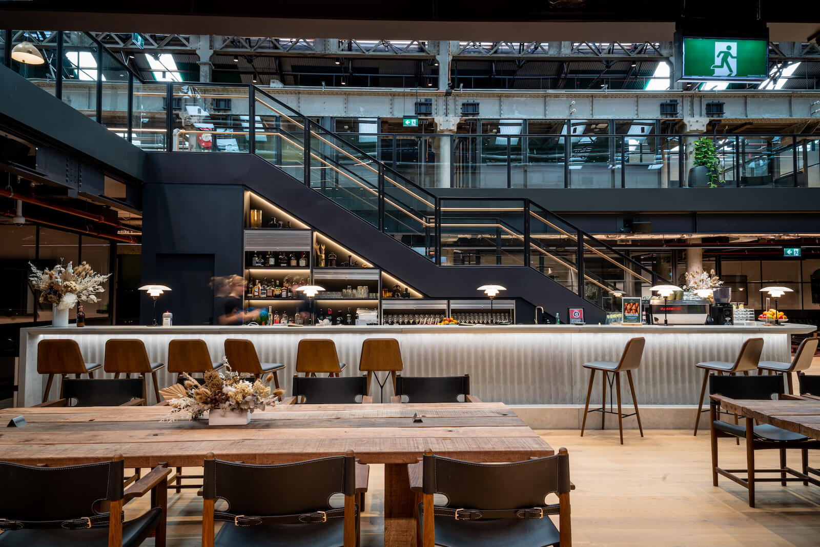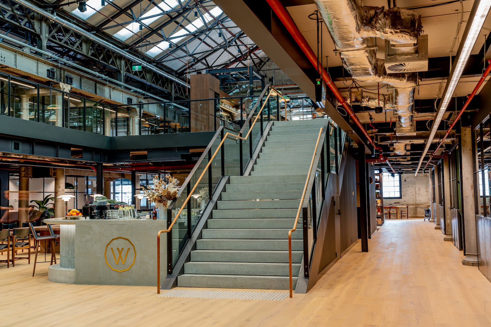 The existing building services serving the floor plate required modification to suit the design and construction of the new Work Club fit-out with exposed heritage beams and raised access flooring.